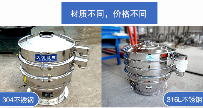 淀粉旋振篩材質(zhì)主要采用不銹鋼材質(zhì),但不銹鋼材質(zhì)的旋振篩又分為304不銹鋼和316L不銹鋼,不同材質(zhì)之間會存在原材料采購費用的不同,價格自然也會有所不同。用戶需要結(jié)合篩分物料的特性及使用場合進行選擇。
