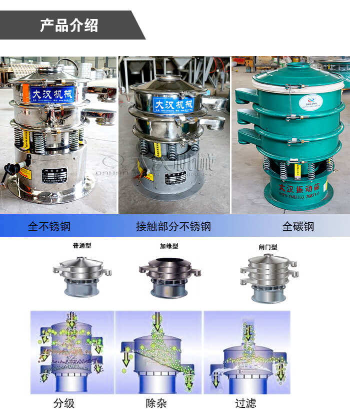 【優(yōu)勢(shì)】:①適用于粒、粉、粘液等物料的篩分過(guò)濾;②篩分可達(dá)500目,過(guò)濾細(xì)至5微米;③彈跳球清網(wǎng)裝置,減少篩網(wǎng)堵塞,篩分效率高;④密封性好,無(wú)粉塵溢散,無(wú)液體泄漏。