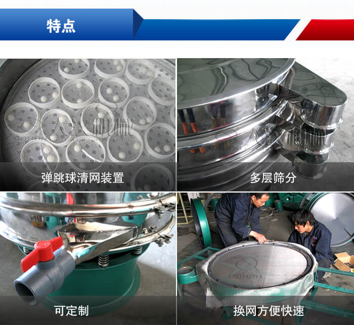【優(yōu)勢】:①1-5層篩網(wǎng),可以同時進(jìn)行2-6個粒度規(guī)格的篩分和過濾;②篩分精度可達(dá)到500目,加裝彈跳球清網(wǎng)裝置,篩孔不堵塞,篩分精度高;③可以按照用戶要求免費設(shè)計。